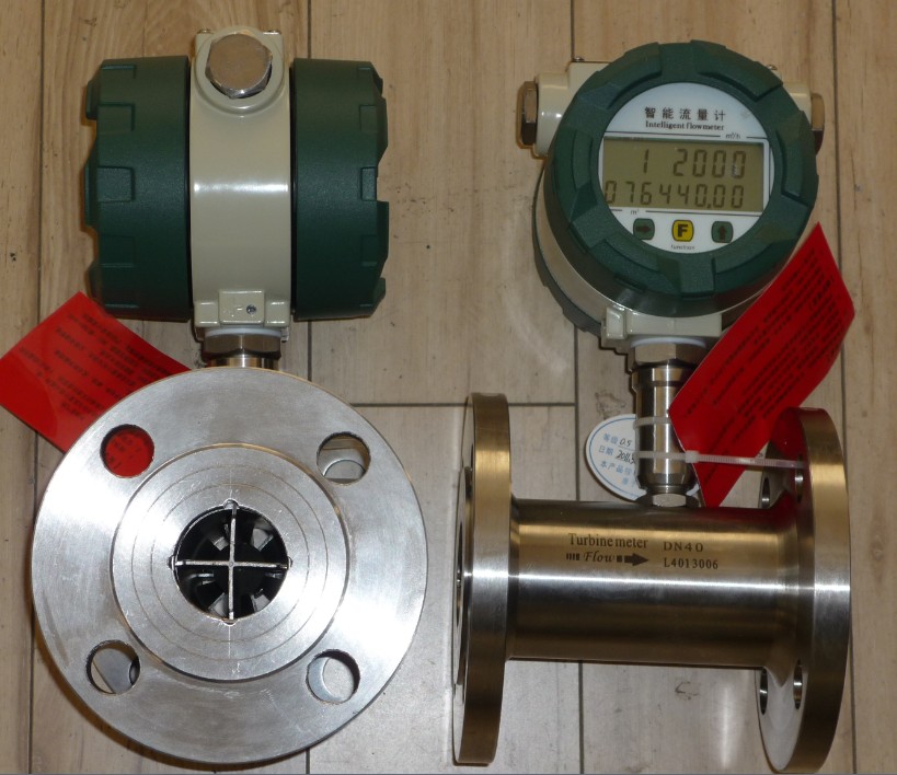流量計(jì)在管道中心安放一個(gè)渦輪,兩端由軸承支撐。當(dāng)流體通過(guò)管道時(shí),沖擊渦輪葉片,對(duì)渦輪產(chǎn)生驅(qū)動(dòng)力矩,使渦輪客服摩擦力矩和流體阻力矩而產(chǎn)生旋轉(zhuǎn)。渦輪的轉(zhuǎn)速通過(guò)裝在機(jī)殼外的傳感線圈來(lái)檢測(cè),傳感線圈將檢測(cè)到的磁通變化信號(hào)送入前置放大器,產(chǎn)生于流速成正比的脈沖信號(hào),送入單位換算與流量積算電路得到并顯示累計(jì)流量值和瞬時(shí)流量值。