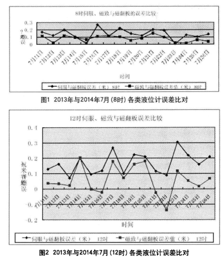 由以上兩圖得知,伺服液位計誤差值曲線較高,液位漲浮較大,計量誤差髙達+0.3m,而磁致液位計誤差值曲線相對穩(wěn)定,液位漲浮較小,計量誤差在±0.2m之間,較為**。