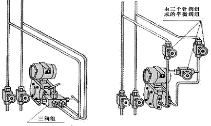⑴將平衡流量計正壓側(cè)引壓管導(dǎo)入三閥組接至差壓變送器的正壓室,將平衡流量計負(fù)壓側(cè)引壓管導(dǎo)入三閥組接至差壓變送器的負(fù)壓室